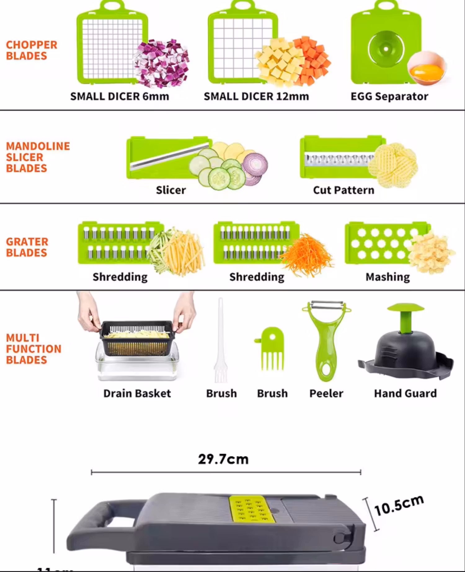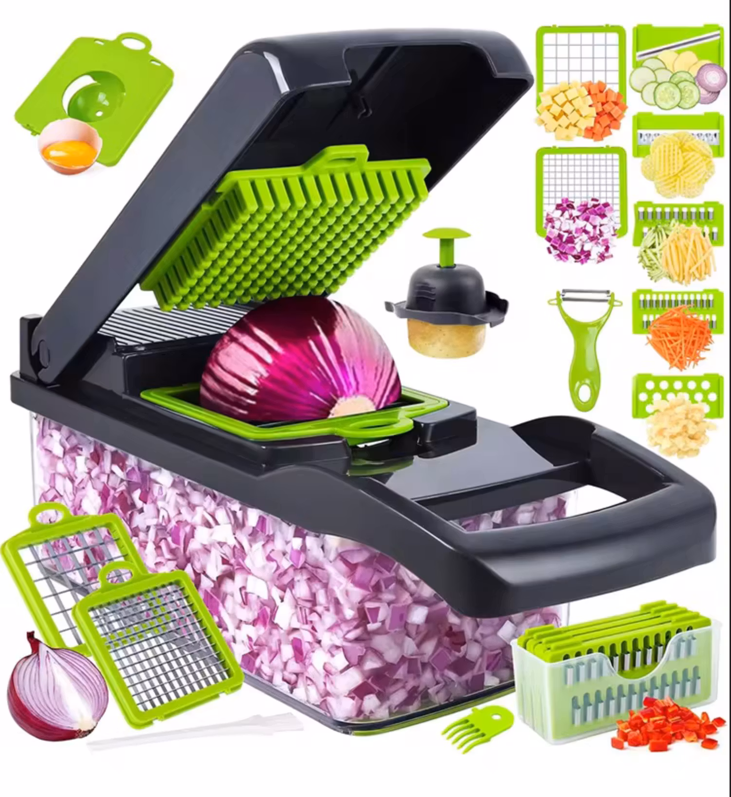 Upptäck enkelheten och mångsidigheten med Grönsakshackare – ditt ultimata verktyg för att snabbt och enkelt förbereda grönsaker och frukter i köket. Denna multifunktionella grönsakshackare är tillverkad med överlägsen kvalitet och robusta material, inklusive rostfritt stål och livsmedelssäkra komponenter, vilket gör den både hållbar och pålitlig för daglig användning.