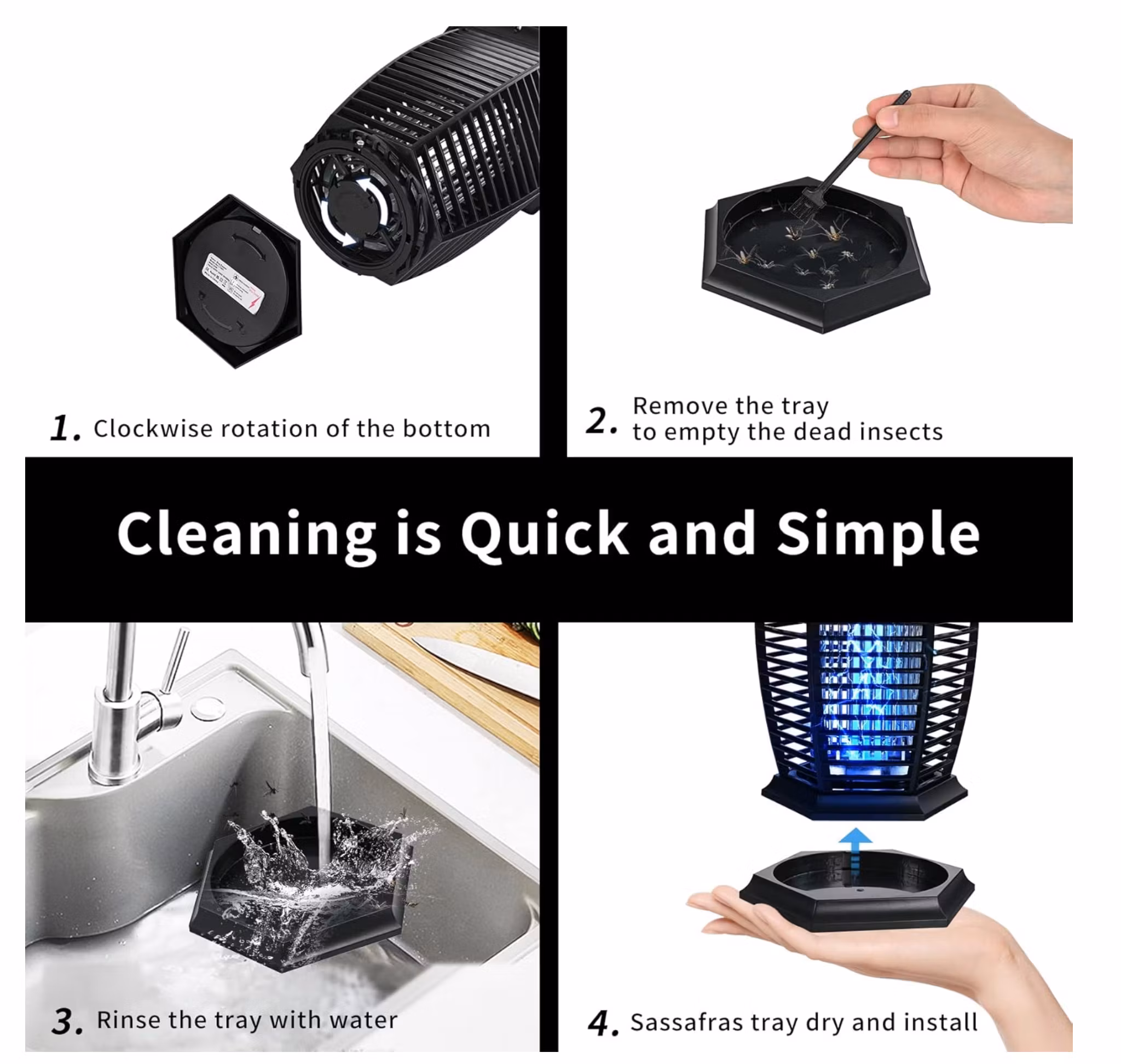BugZapper Easy hjälper dig att bli kvitt mygg, flugor, malar och andra flygande insekter – både inne och ute. Den lockar till sig insekter med UV-ljus och eliminerar dem med en kraftfull elektrisk stöt. Tack vare ljudlös drift passar den i alla miljöer, även i hem med barn, husdjur och växter. En avtagbar uppsamlingsbricka gör rengöringen enkel, och en praktisk upphängningskrok ingår. Designad för att tåla växlande väderförhållanden och ge dig en bekymmersfri insektsfri zon, säsong efter säsong.