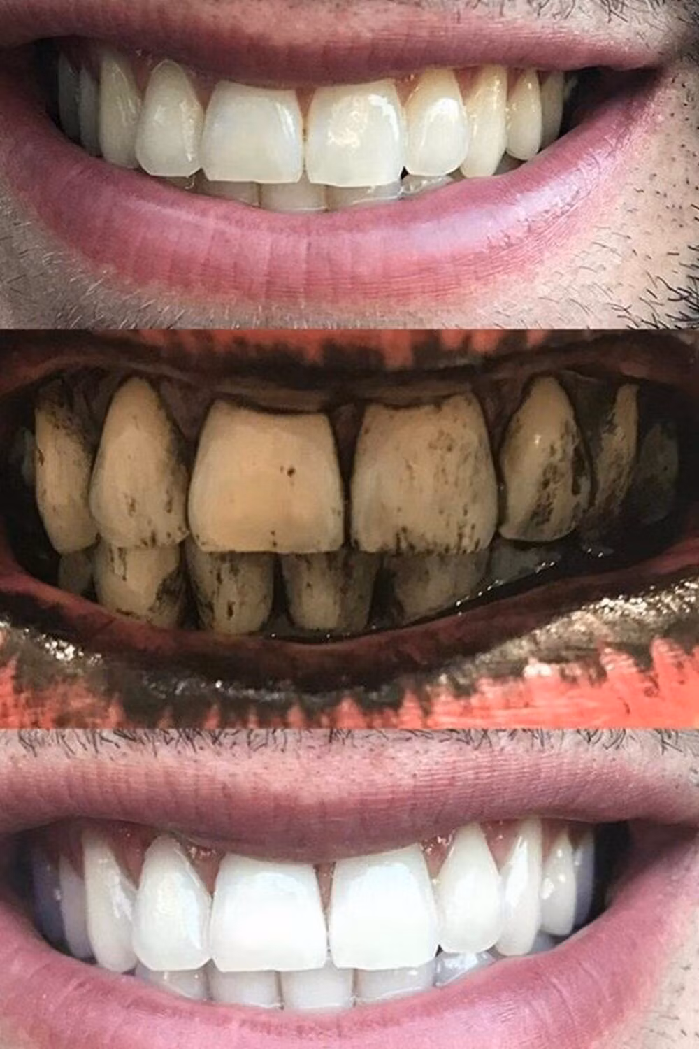 Aktivt kol, som har framställts av kokosnötens skal, rengör effektivt och polerar tänderna utan att skada emaljen.