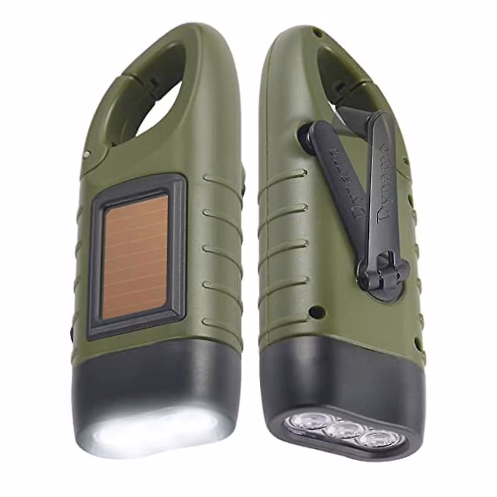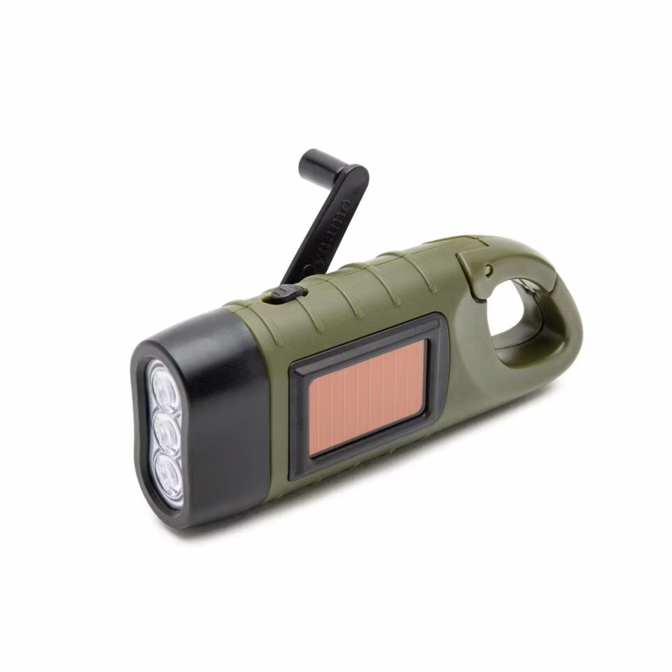 Hur får du ljus vid ett strömavbrott? Här är ficklampan som aldrig slutar lysa! Den laddas med den inbyggda solcellen eller snabbare med dynamo-veven.