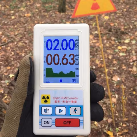 - Alarmfunktion som varnar vid höga strålnings-nivåer så att du kan söka skydd
