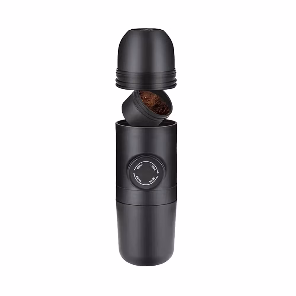 Allt du behöver göra är att fylla på med kaffepulver i ena änden, varmt vatten i andra och sedan pressa fram med pumpen.