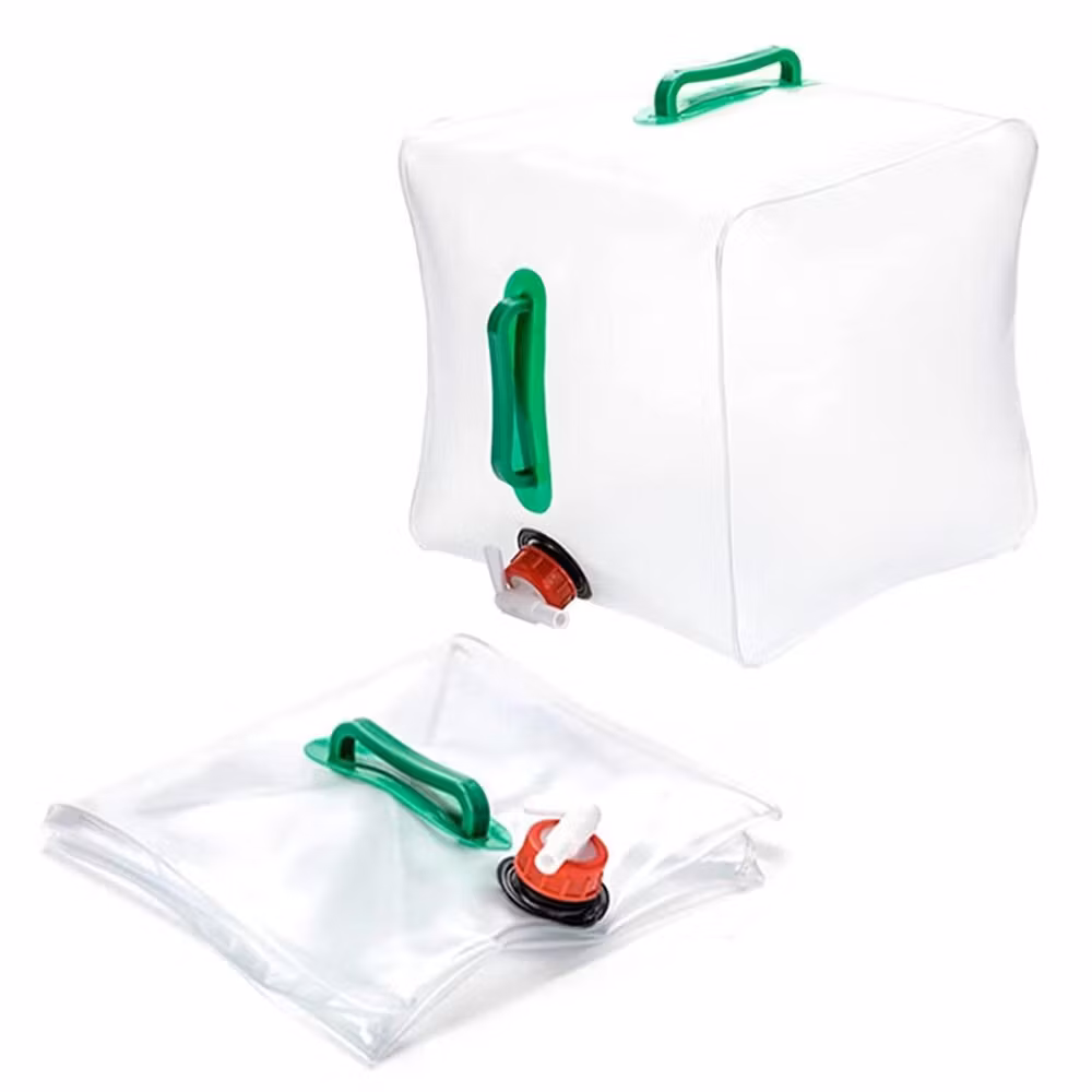 Finns i två storlekar, 10 liter och 20 liter. Den mindre vattendunken har ett handtag och den större har två handtag.
