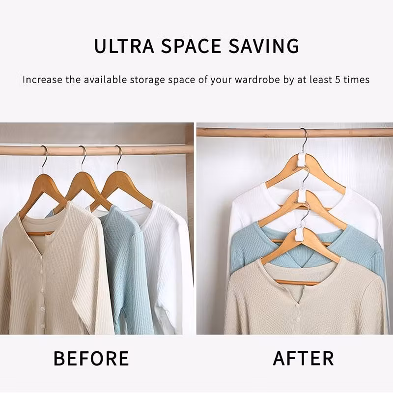 Blir du galen över att inte få plats med alla kläder i garderoben? Vi har lösningen. Med denna smarta produkt har du mer plats på nolltid. Trä över kroken på galgen och häng dit nästa galge och fortsätt så tills du utnyttjat all utrymme.