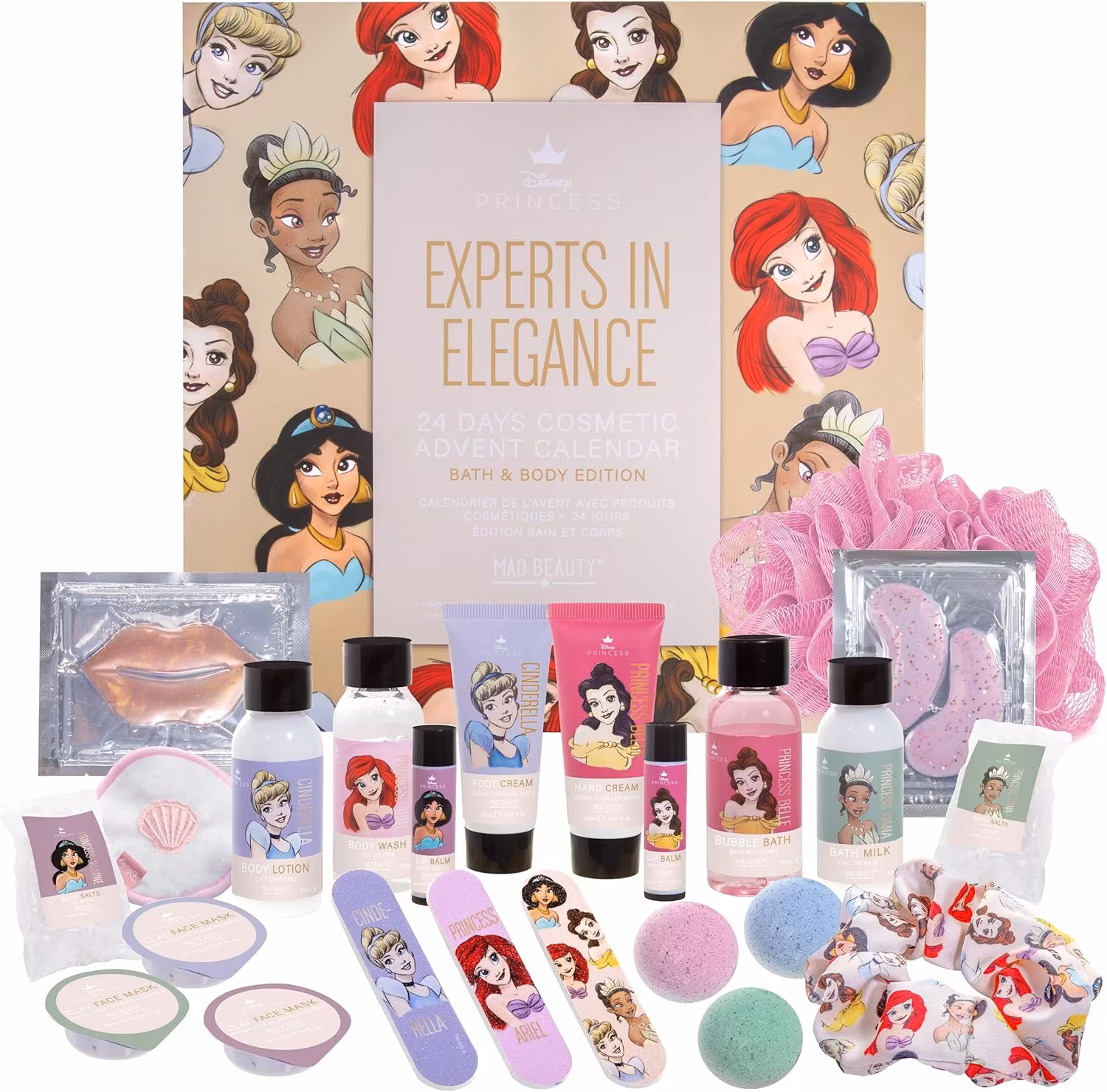 🎄 Julöverraskning med Disney Magic: Fira julen med vår Disney Princess adventskalender som erbjuder 24 dagar av skönhet och wellness. Från ansiktsmasker och kroppslotion till hårgummi och mer, ger denna kalender perfekt stil och glädje från topp till tå.