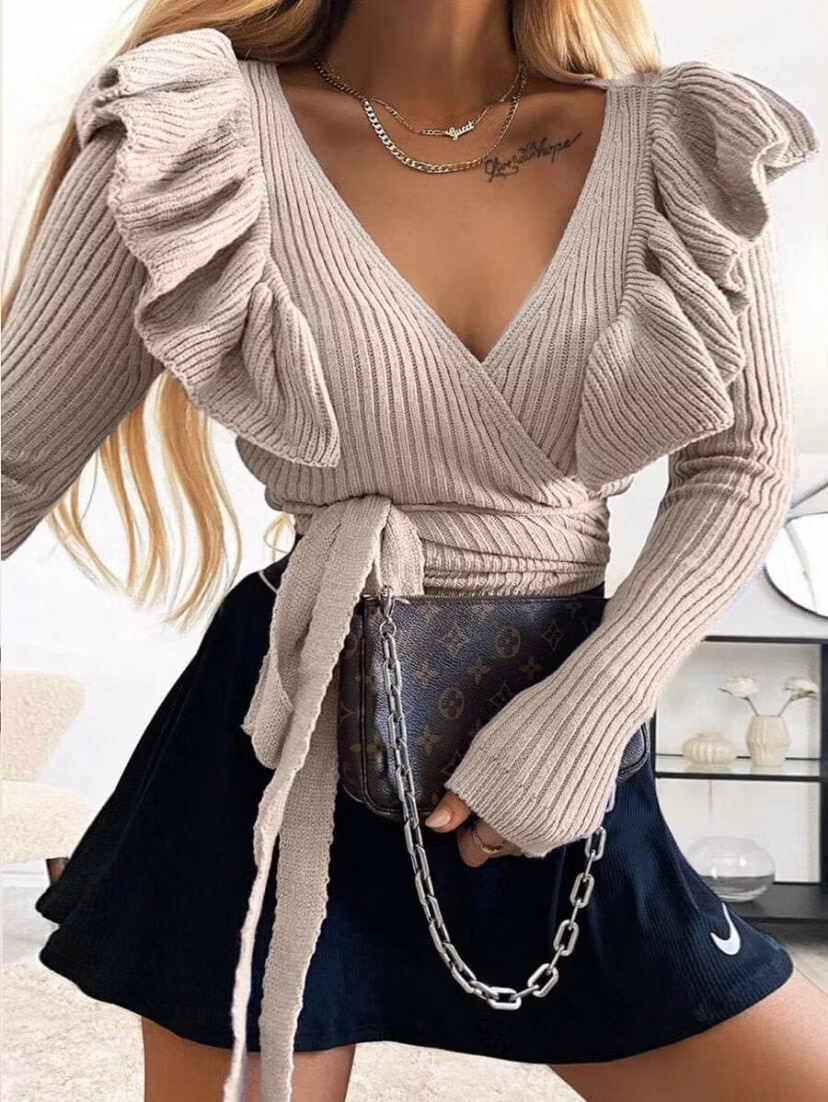Långärmad tröja med volang-detaljer.