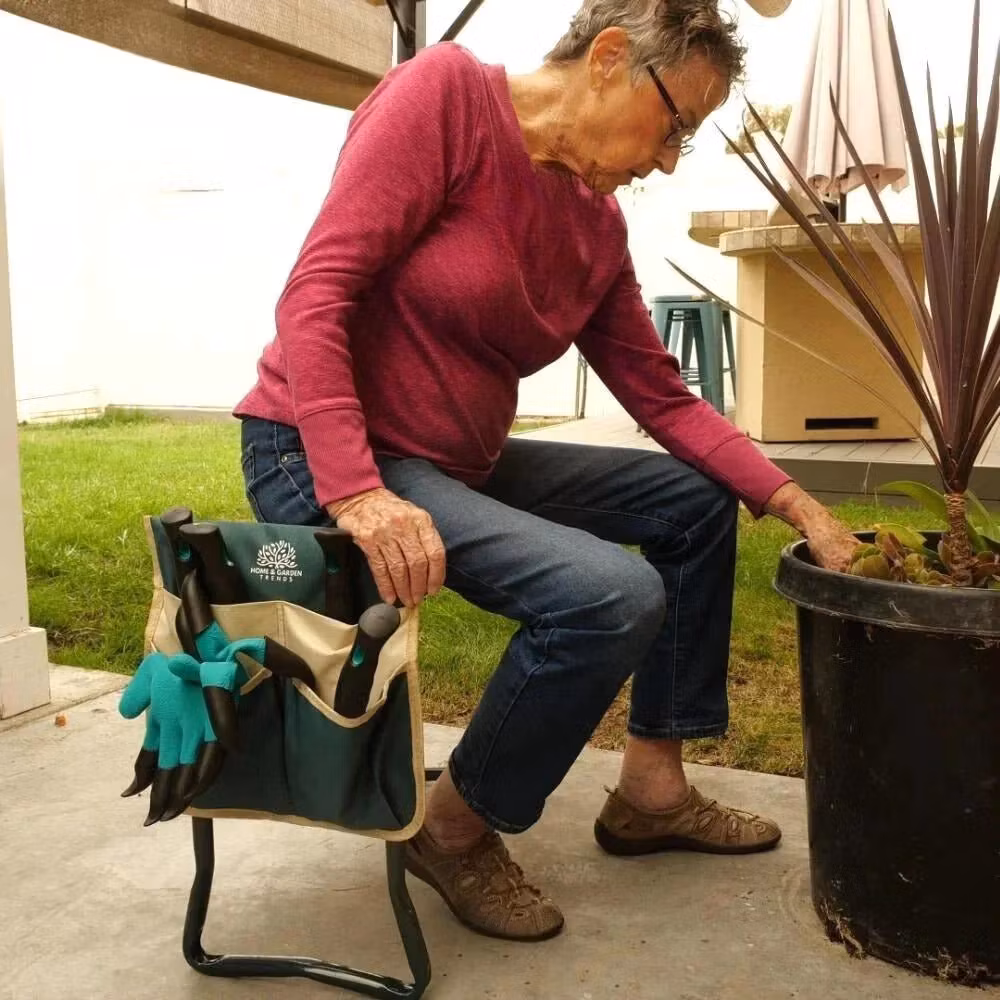 Ökad Säkerhet och Självständighet: Med stabiliserande armar och en robust ram ger Knähjälpen det stöd du behöver för att enkelt resa dig upp och sätta dig ner. Detta ökar din säkerhet och självständighet, vilket gör trädgårdsarbete till en säkrare aktivitet, även för dem med begränsad rörlighet.