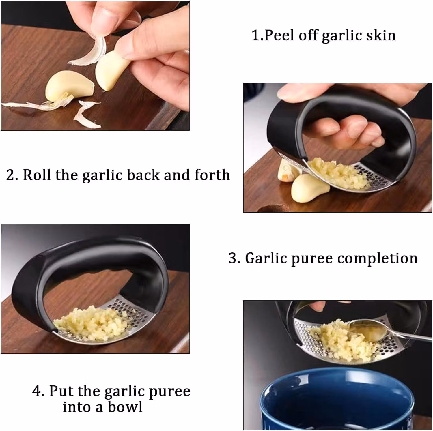 Förutom vitlök kan denna press även användas för att krossa ingefära, chili och andra kryddor. Den mångsidiga designen ger dig fler matlagningsmöjligheter och gör det till en värdefull del av ditt köksutrustning.