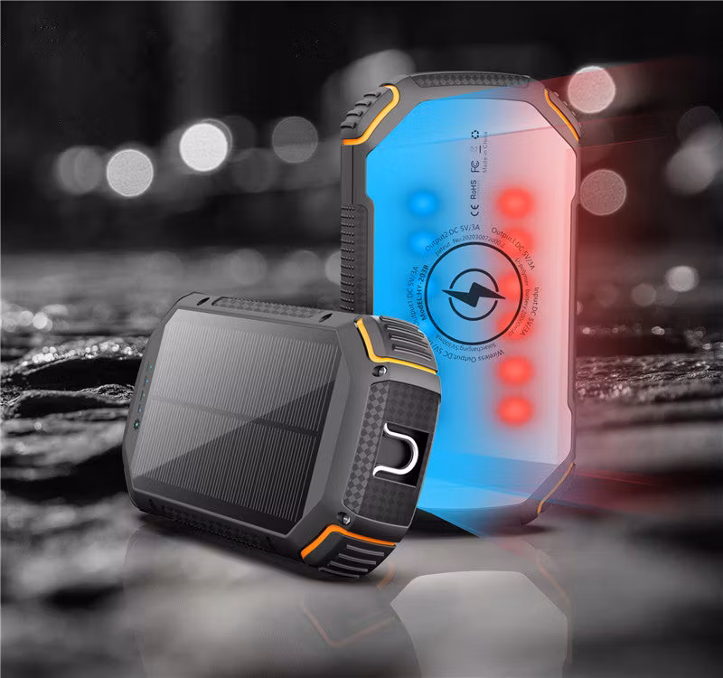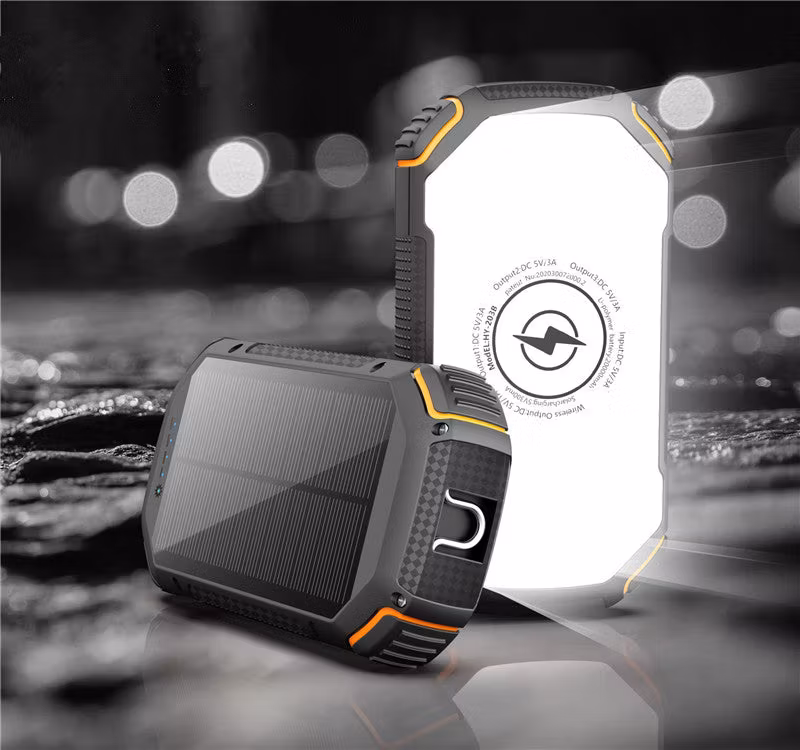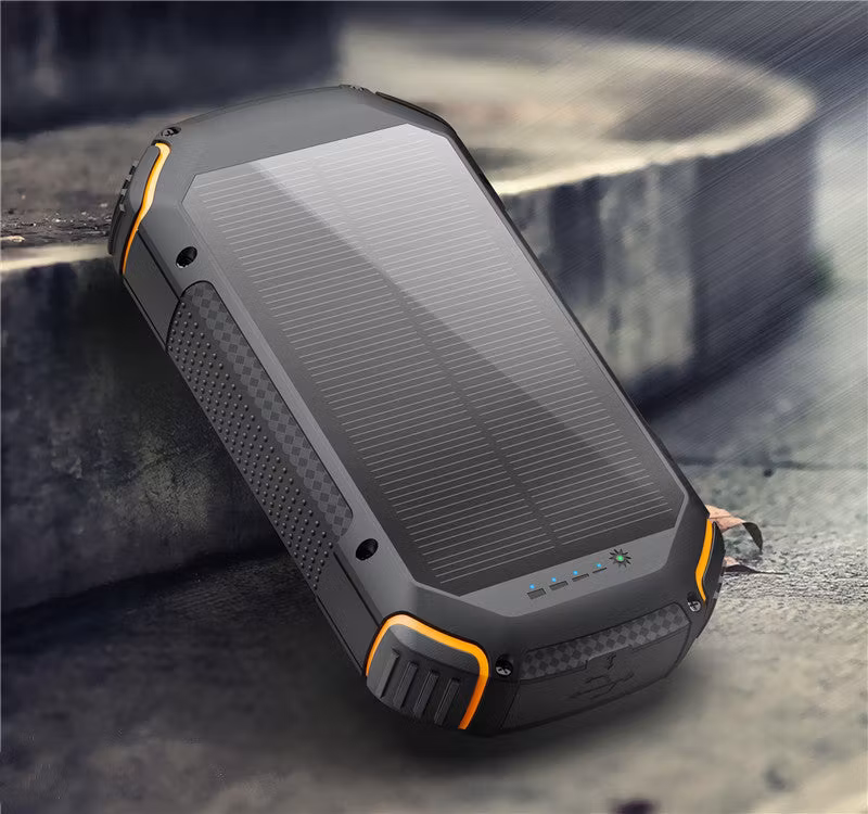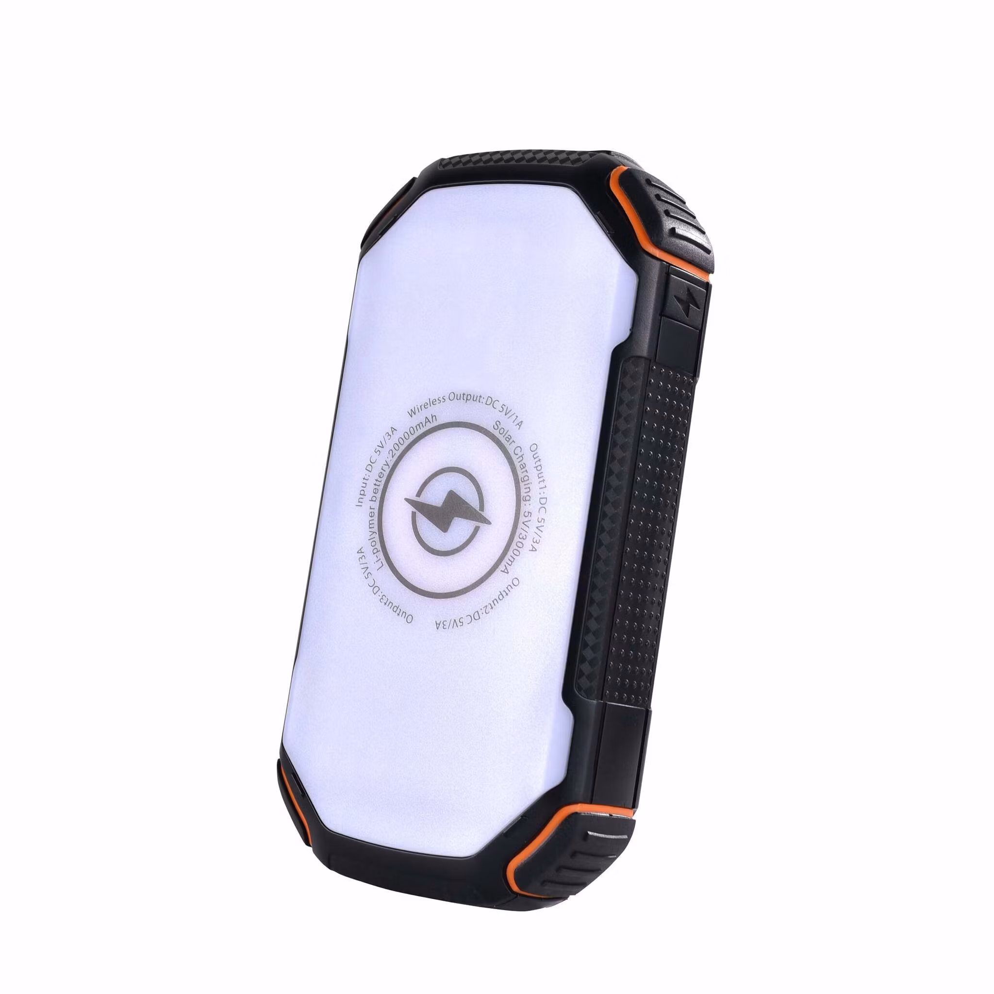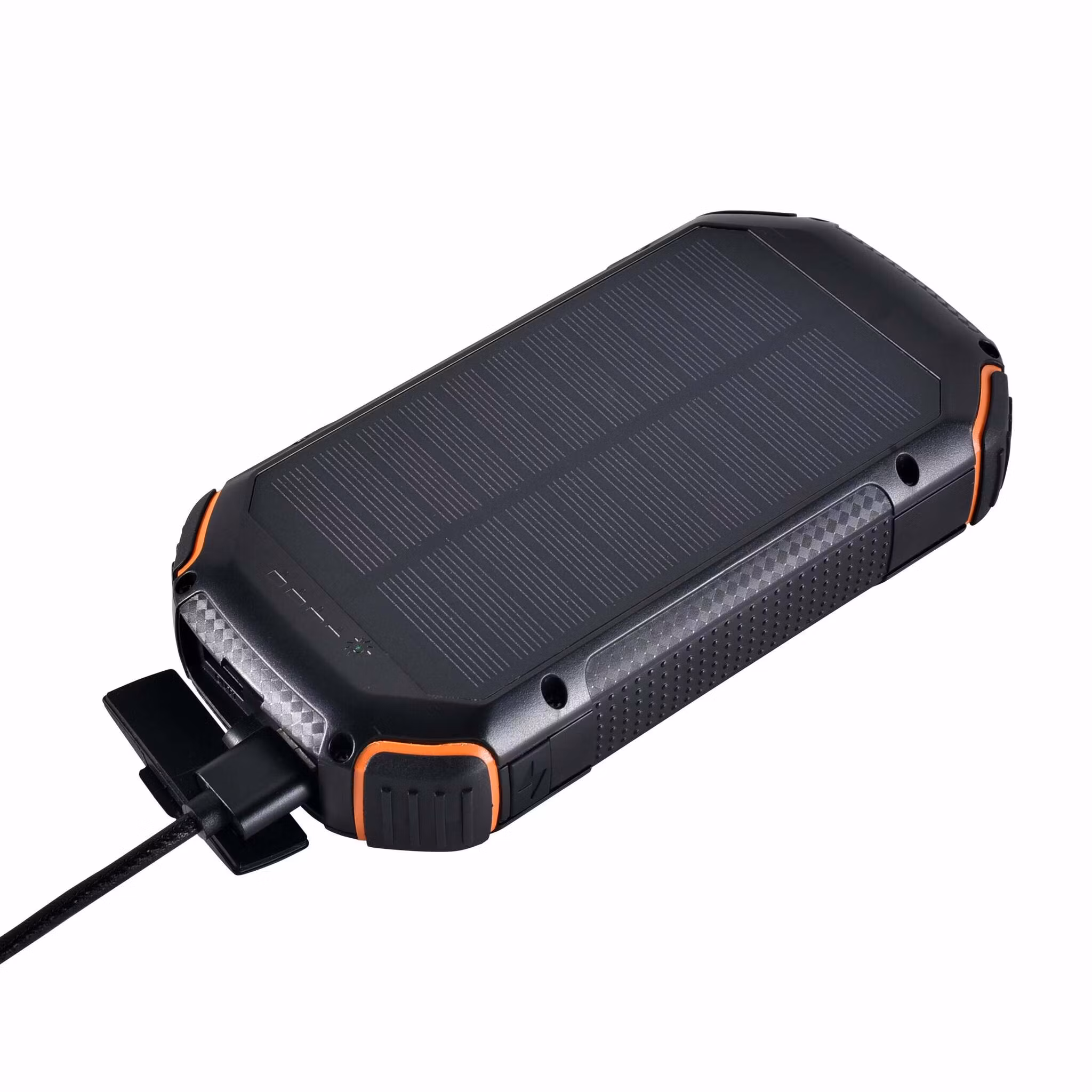 En kraftfull och tålig powerbank du kan lita på i alla lägen, med solpaneler och trådlös QI-laddning.