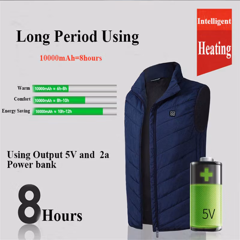 ✅ Långvarig användning - En 10 000mAh powerbank kan ge upp till 10 timmars värme i genomsnitt (varaktigheten beror på typen av powerbank); powerbanks ingår inte i vår värmeväst.