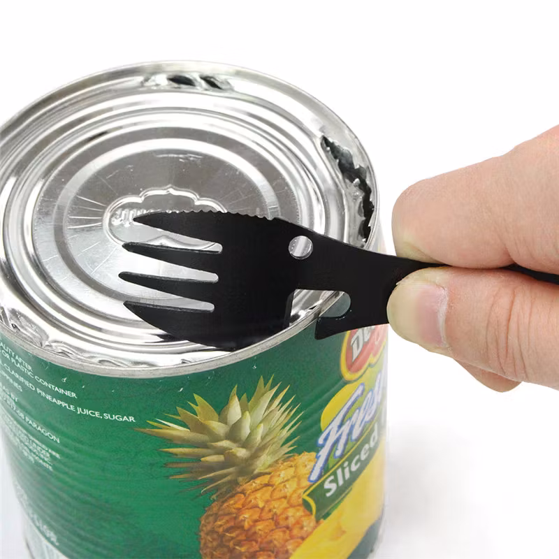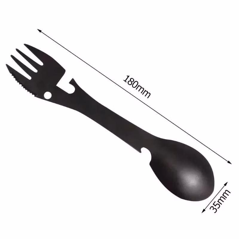 Vår smarta spork är en gaffel och sked i ett, med inbyggd konserv- och kapsylöppnare! Den är superenkel att ha med sig ut i vildmarken och ett perfekt verktyg både i naturen och för överlevnad i nödsituationer.
