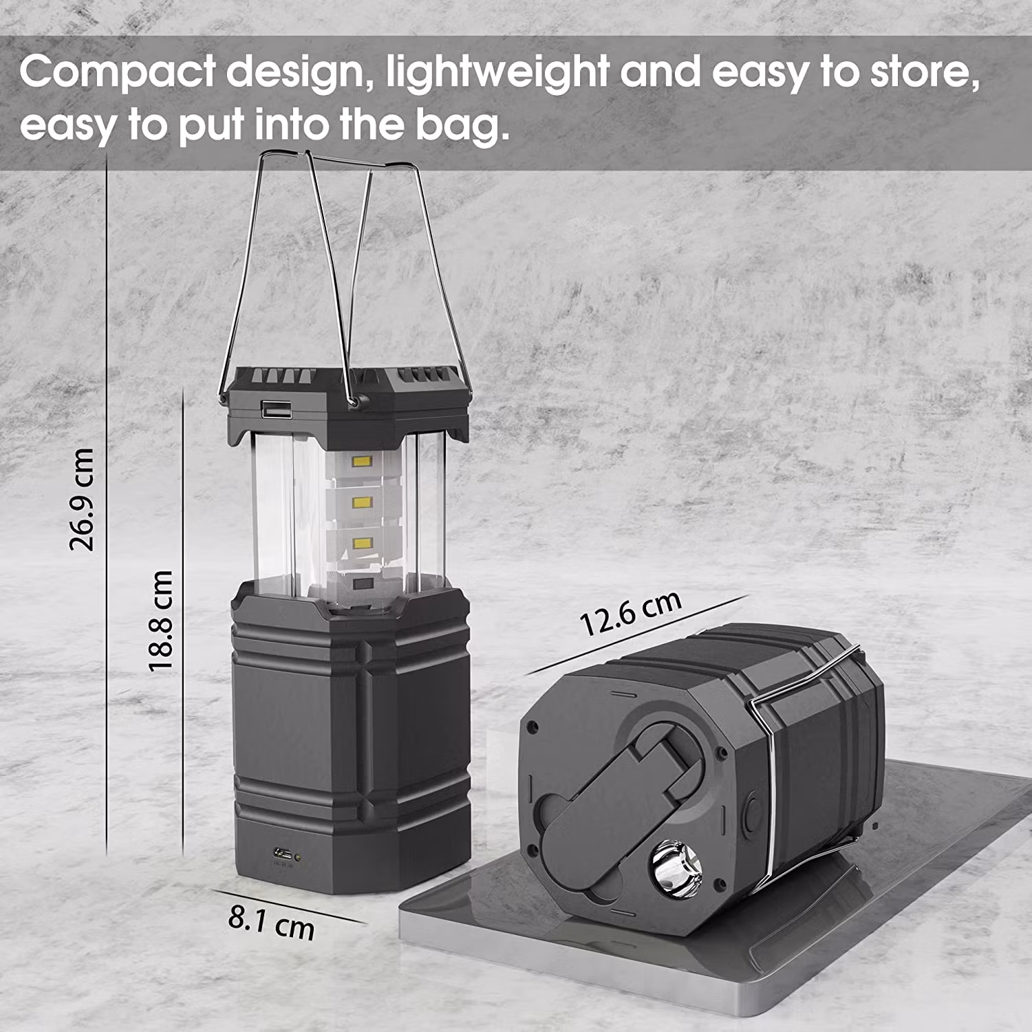 Denna uppladdningsbara sollyktan har en kraftfull LED-lampa, inbyggd ficklampa och 3000 mAh powerbank som kan ladda din mobiltelefon.