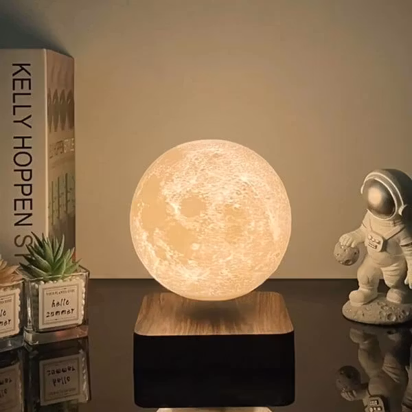 Denna fascinerande månlampa ger en magisk och mysig atmosfär. Med hjälp av magnet svävar lampan, lyser och roterar av sig själv.