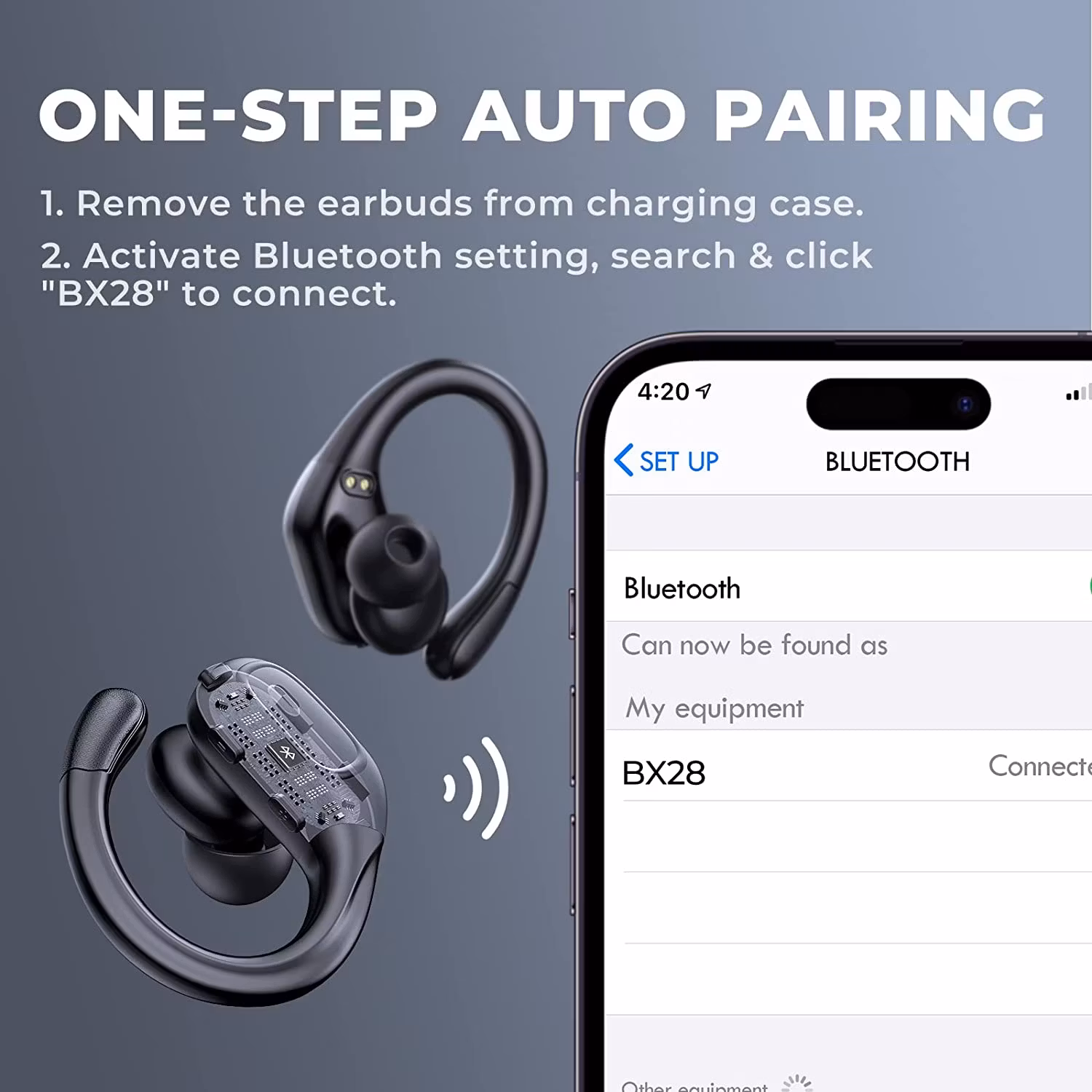 Produktspecifiktion: BX28 inkluderar ett laddningsfodral, trådlösa hörsnäckor, Type-C laddningskabel, öronpropp/öronkåpa × 3 par (första installation M) och bruksanvisning.