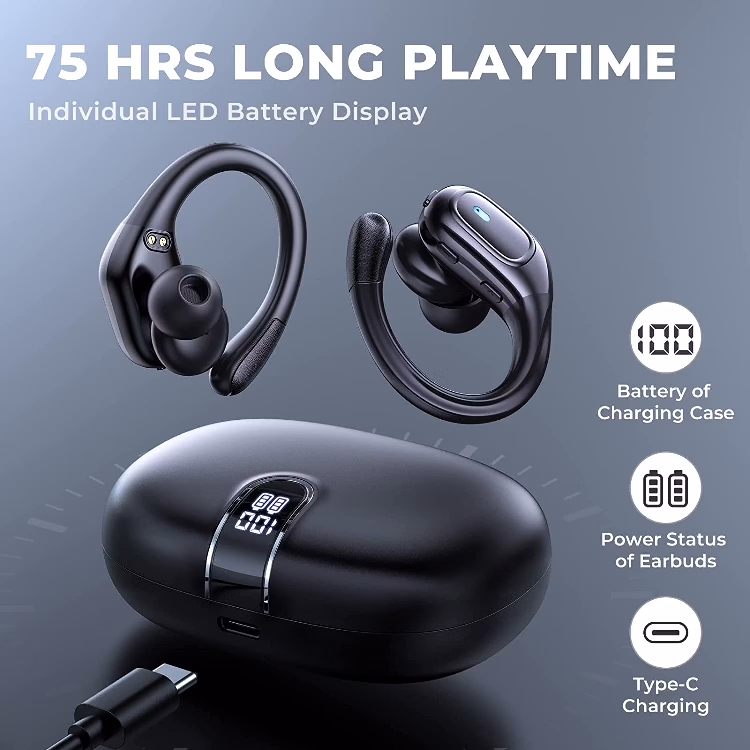 75 timmar lång speltid och LED-skärm: En enda laddning ger dig hela 7 timmars lyssning, medan laddningsfodralet för Bluetooth-hörlurar förlänger det till 68 timmar. LED-skärmen på de trådlösa hörlurarna visar exakt den återstående strömmen i öronsnäckorna och laddningsfodralet. Det kraftfulla batteriet gör att du kan lyssna på din favoritmusik hela dagen.