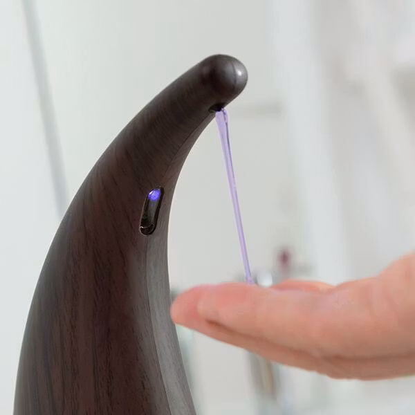 Lägg din hand framför tvålpumpen för att få ut tvål/diskmedel utan kontakt med pumpen, vilket undviker smuts och fingeravtryck.