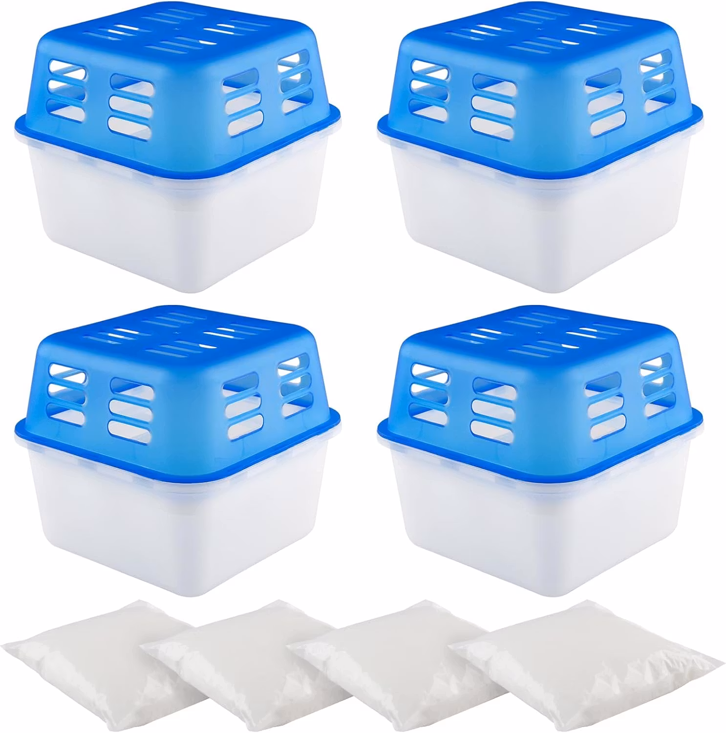 Detta paket innehåller 4 avfuktare och 4 x 400 g paket med avfuktande partiklar, vilket gör den till en perfekt lösning för hushållsavfuktning.