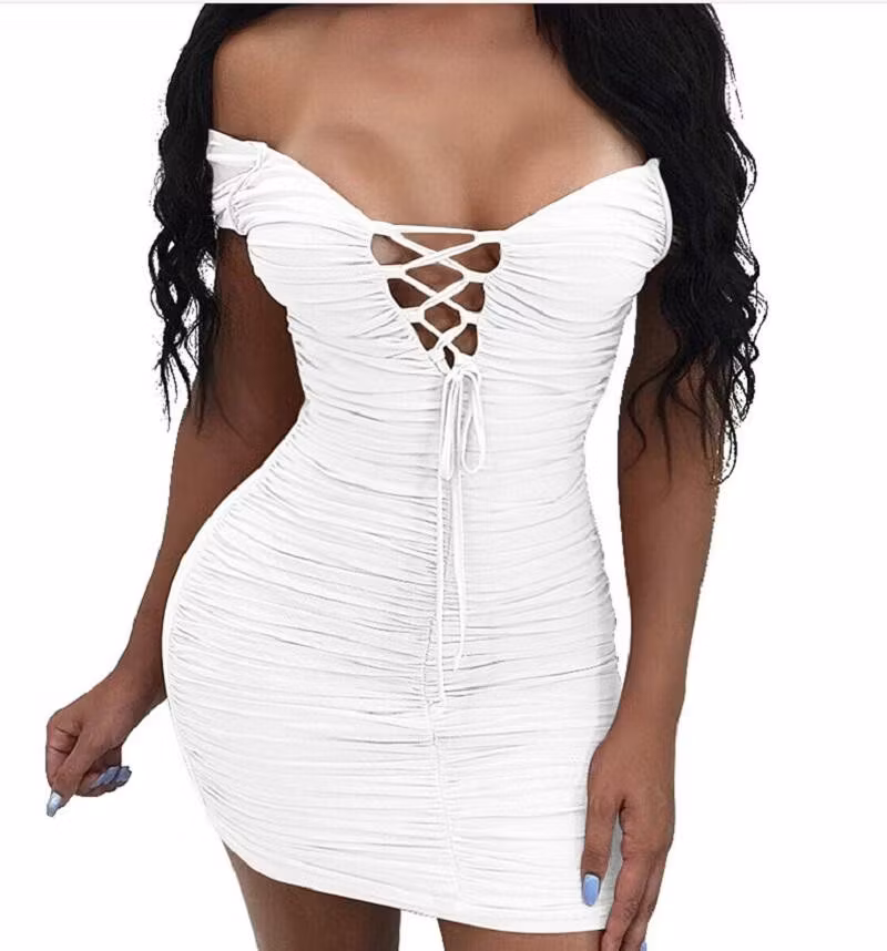Senorita är en vit klänning detaljerad med snörning fram.